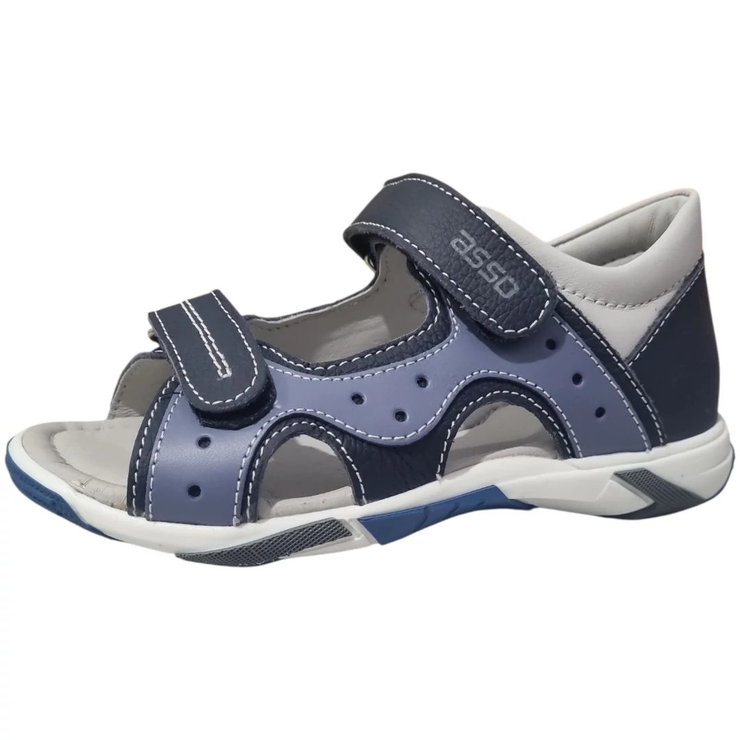 Kalandra fel! Ez a kiváló minőségű Asso fiú bőrszandál stabil tartást, rugalmas talpat és maximális szellőzést biztosít a nyári játékhoz és sétákhoz.