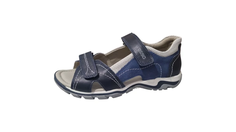 Az Asso márka híres a láb egészségét szem előtt tartó, anatómiai kialakítású lábbelijeiről. Ez a 39-40-es méretben elérhető fiú modell prémium minőségű bőrből készült, amely biztosítja a láb szellőzését és a tartósságot. A sötétkék és középkék bőrfelületek kombinációját világosszürke, lyukacsos mintázatú részletek és kontrasztos fehér tűzések teszik sportossá.
