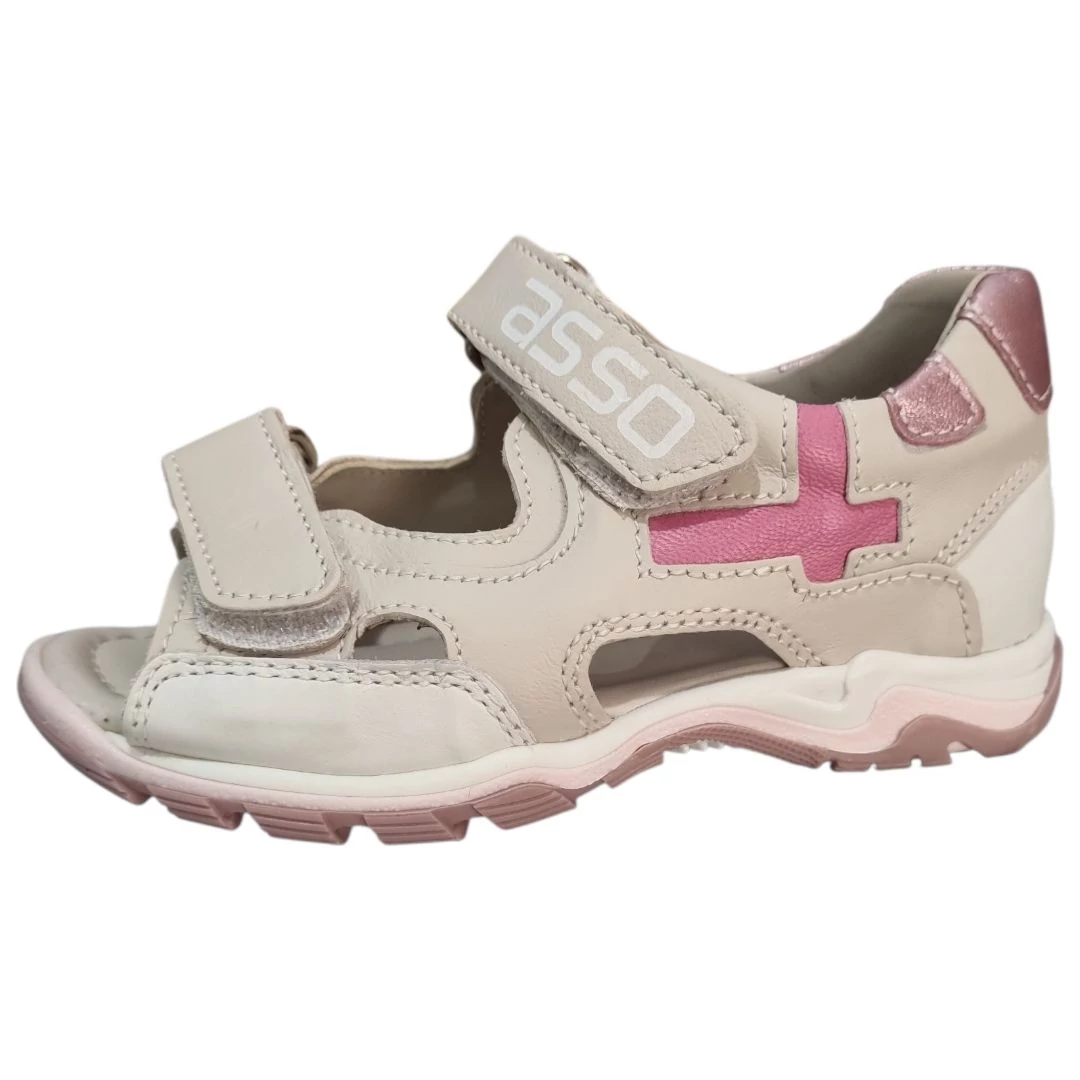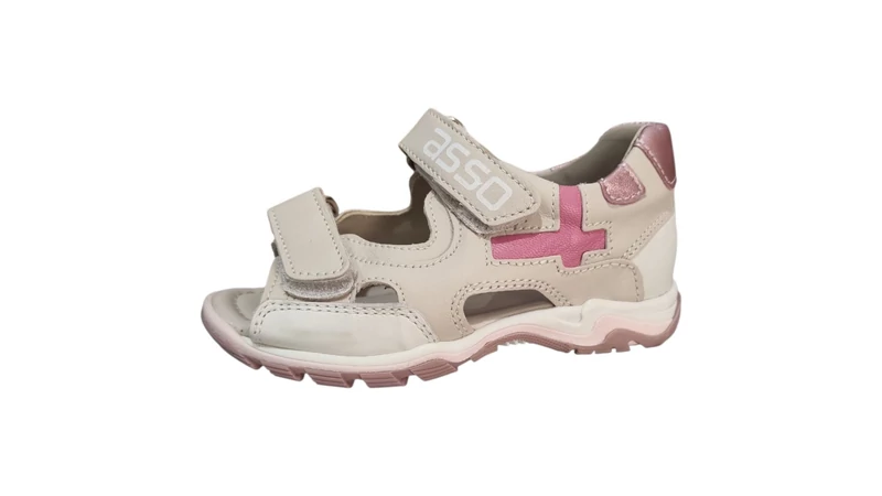 Kifinomult stílus, maximális kényelem! Ez az Asso kislány szandál bézs bőr felsőrésszel, rosegold részletekkel és anatómiai kialakítással támogatja a lábak egészségét.