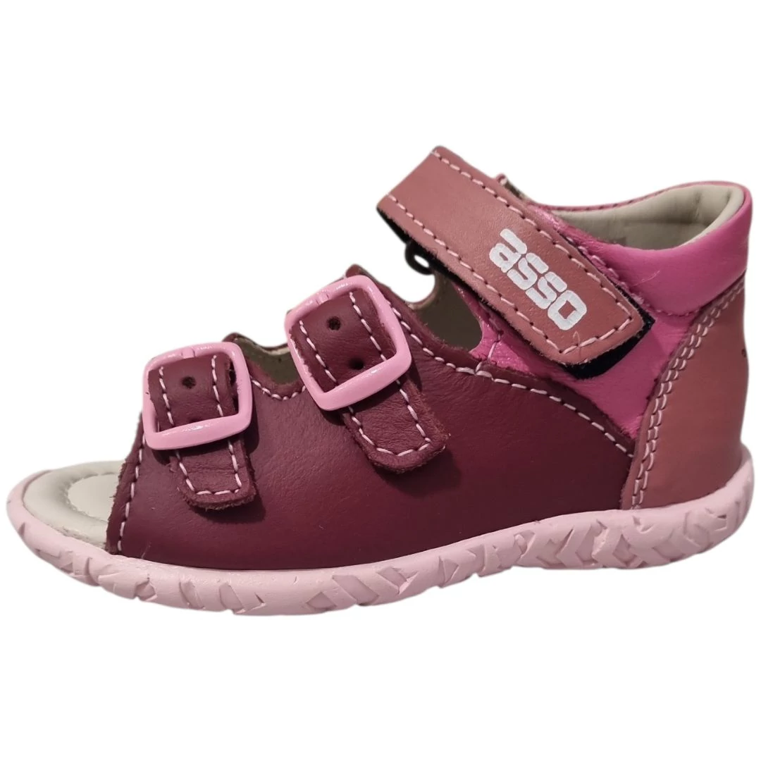 Asso Kislány Bőrszandál - Bordó / Mályva / Méhecskés 21-24