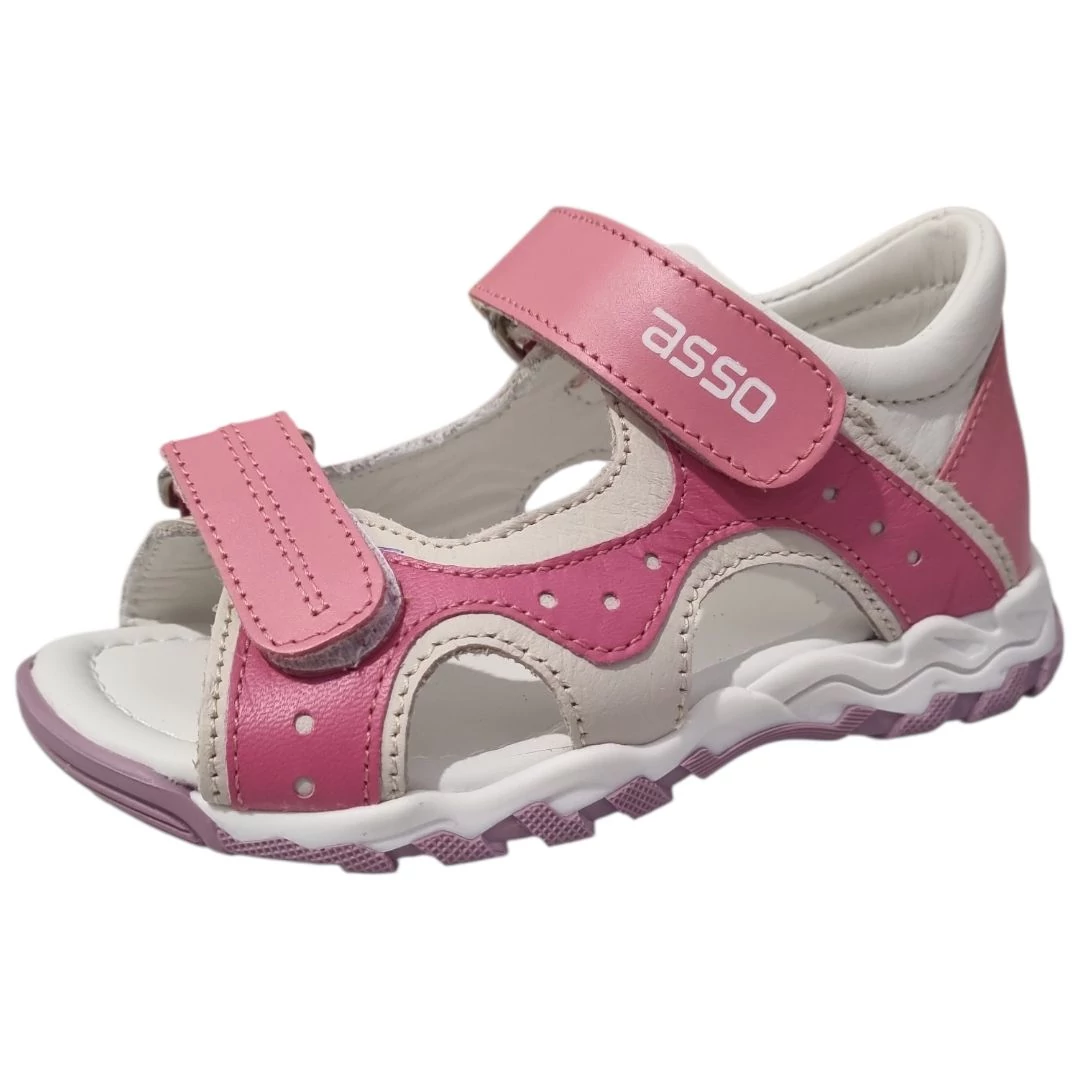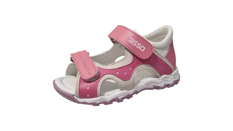 Az Asso márka híres a gyermeklábak anatómiáját szem előtt tartó lábbelijeiről. Ez a 25-30-as méretben elérhető kislány modell prémium minőségű bőrből készült, amely biztosítja a láb szellőzését és a hosszú élettartamot. A fehér alapszínt élénkebb és pasztell rózsaszín betétek egészítik ki, így adva modern és lányos megjelenést a szandálnak.