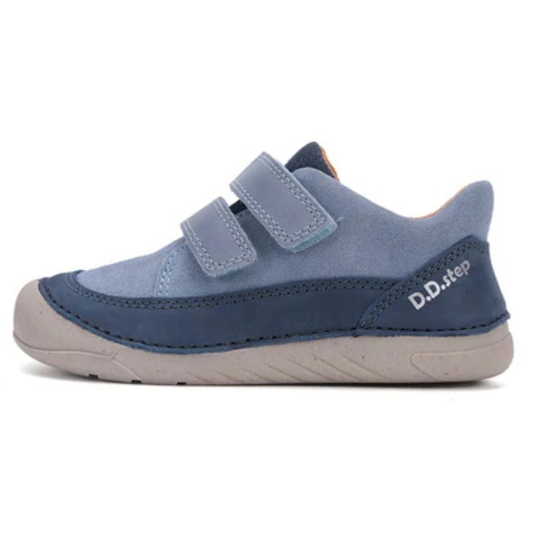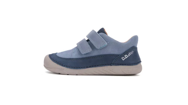Kényelem minden lépésnél! Ez a kék DDStep kisfiú cipő puha bőr felsőrésszel és rugalmas talppal támogatja a lábak szabad mozgását az átmeneti szezonban.