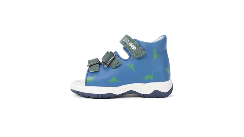 A D.D.Step tervezői különös figyelmet fordítanak a fejlődésben lévő gyermeklábak egészségére. Ez a Marine fantázianevű szandál kiváló minőségű valódi bőrből készült, amely biztosítja a lábak természetes szellőzését. A modell sötétkék és szürkészöld színkombinációja sportos megjelenést kölcsönöz, amit a játékos zöld dínó figurák tesznek igazán barátságossá a legkisebbek számára.