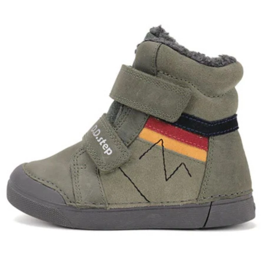 Ez a vagány, zöld színű DDStep fiú téli bakancs tökéletes társ a hideg, havas napokon. A divatos megjelenésről a színes oldalsó csík és a hímzett hegyvonulat gondoskodik, miközben a cipő minden porcikája a kényelmet és a meleget szolgálja. Ideális választás a mindennapi óvodai vagy iskolai viselethez, és a hétvégi kalandokhoz is.