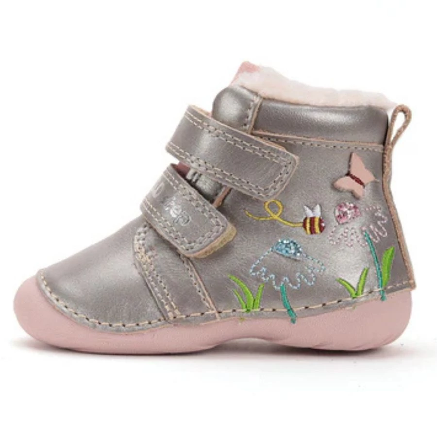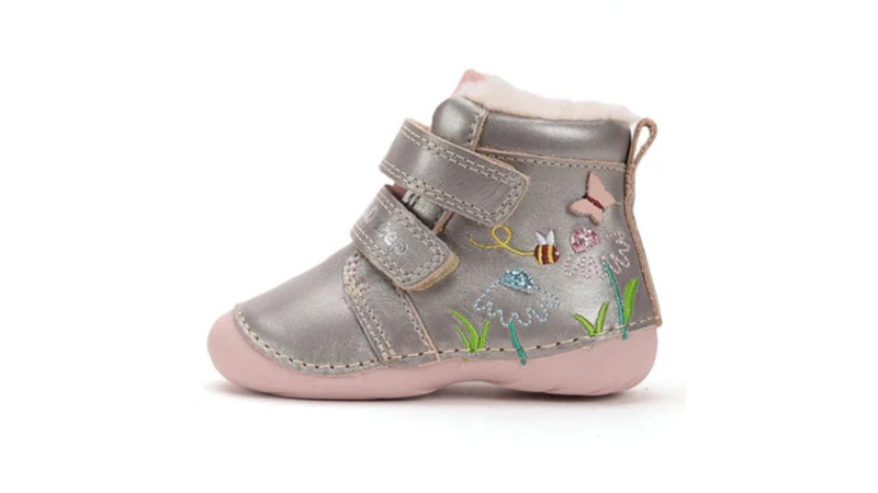 Ki mondta, hogy télen nem nyílhatnak virágok? Ez a tündéri DDStep bakancs elhozza a tavaszi rét hangulatát a hideg napokba. A csillogó bronz felsőrészt bájos hímzések díszítik: virágok, egy kis méhecske és egy pillangó. De a szépség mellett ez a cipő egy igazi "fészek": puha, meleg és biztonságos az első lépésekhez és a magabiztos totyogáshoz is.