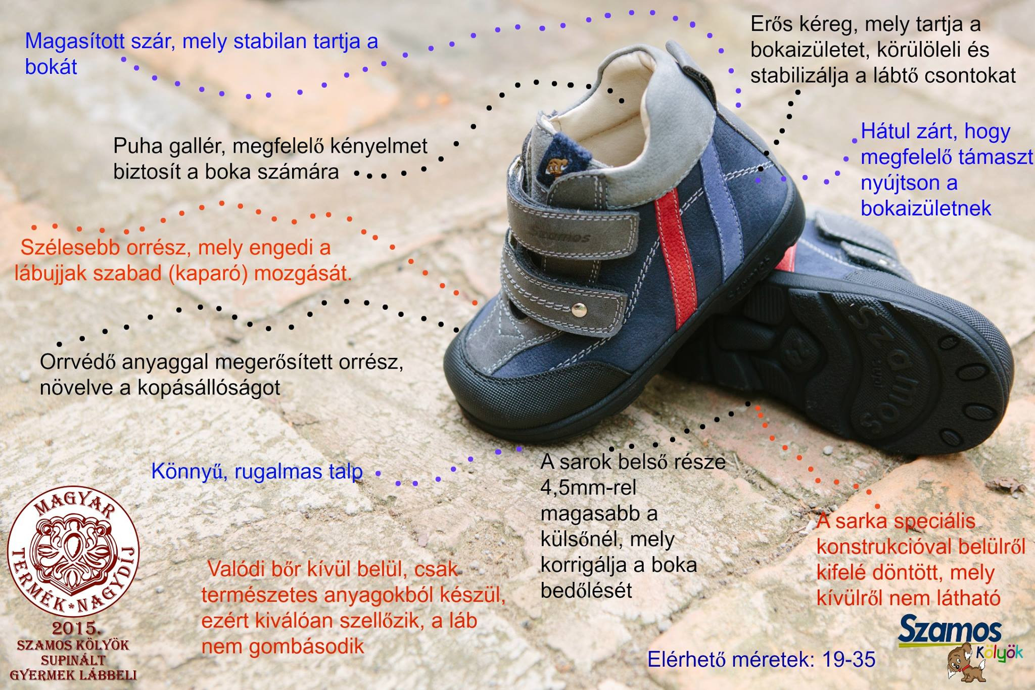 - A bokák kifelé dőlésével korrigált saroktengely helyes állásban tartását, a supinált cipő megerősített sarokrésze biztosítja. Ezek a tulajdonságai teszik a Szamos supinált cipőket orvostechnikai eszközzé.