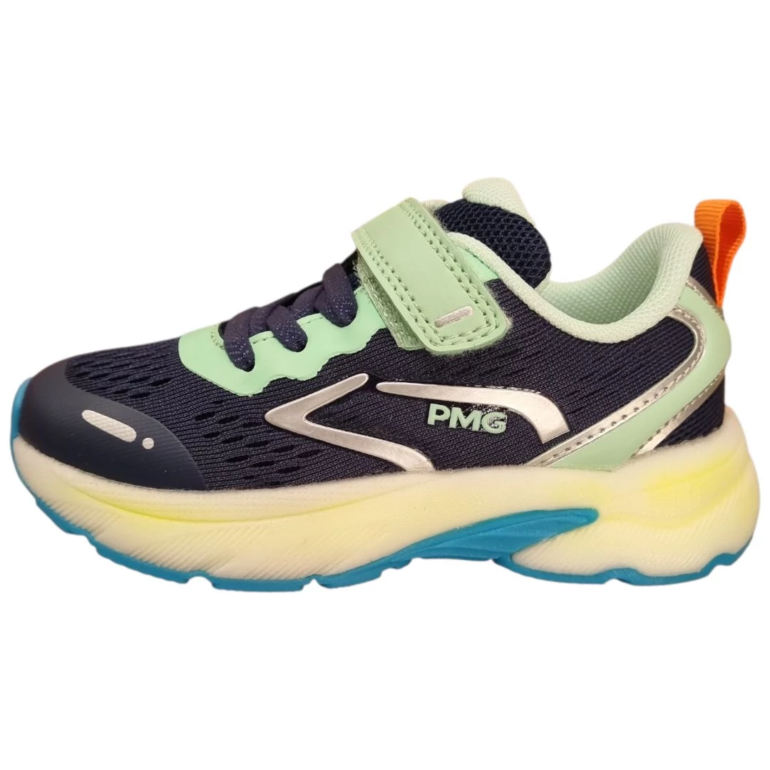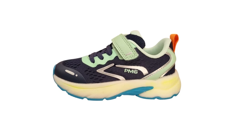 A Primigi PMG szériája a funkcionalitást helyezi előtérbe. Ez a 24-37-es mérettartományban elérhető modell speciális technikai hálós (mesh) anyagból készült, amely biztosítja a lábak optimális szellőzését még intenzív mozgás közben is. A sötétkék alapszínt vibráló mentazöld részletek és ezüst reflex fényvisszaverő elemek teszik látványossá és biztonságossá.