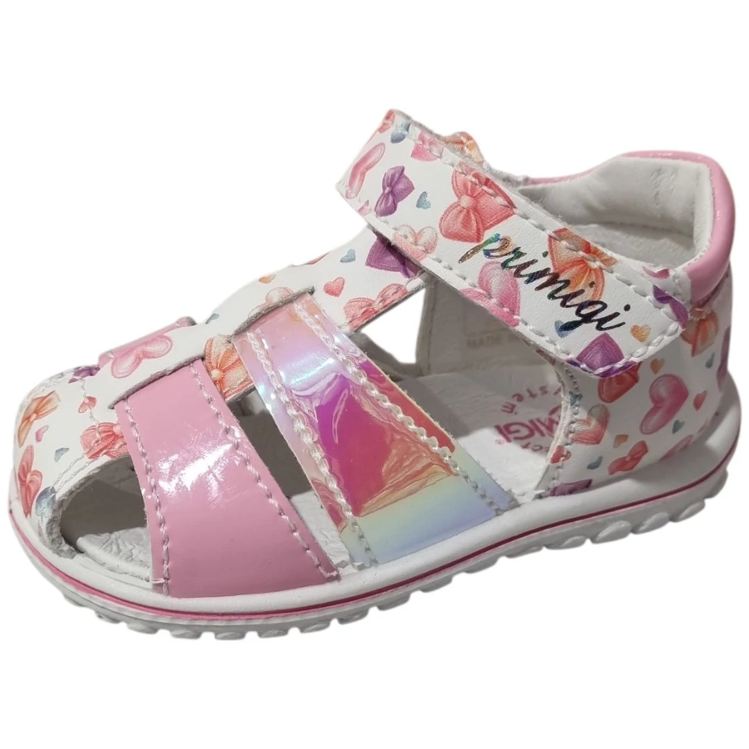 A Primigi babacipők a maximális kényelmet és a lábak védelmét ötvözik. Ez a 19-26-os méretben elérhető modell prémium minőségű bőrből készült, amely egyszerre puha és tartós. A szandál különlegessége a pasztell rózsaszín alapszínen megjelenő ezüstösen csillogó szív és masni díszítés, amely igazán tündéri megjelenést kölcsönöz a lábbelinek.