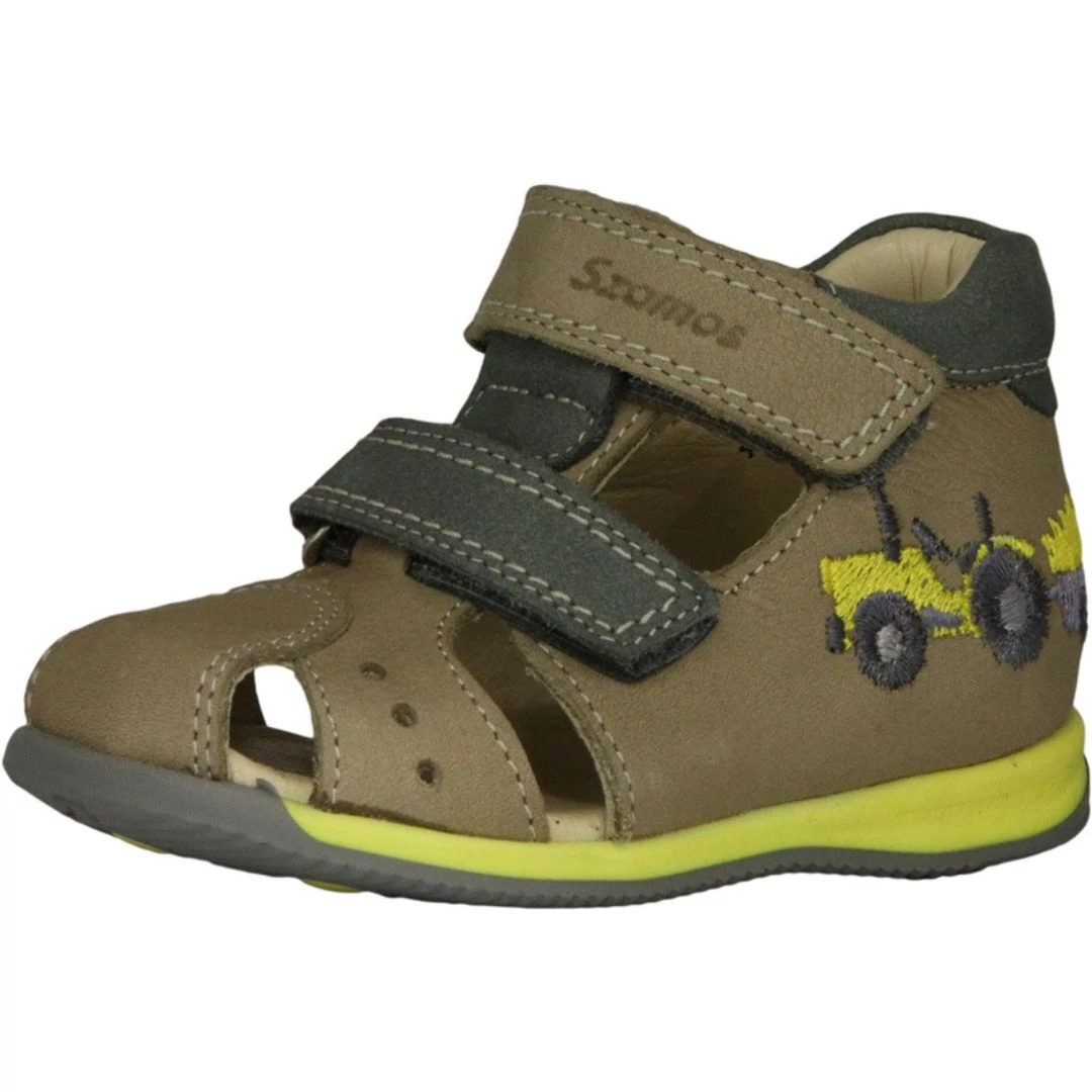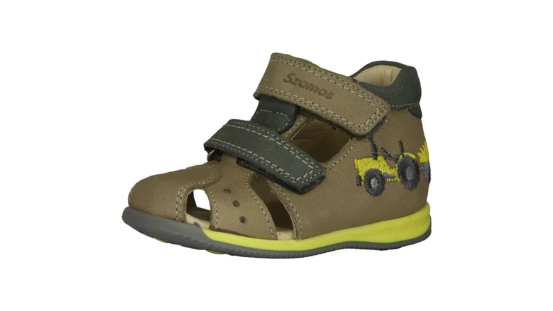 A Szamos lábbelik a magyar szakértelem és a minőségi anyagok találkozásából születnek. Ez a 19-30-as méretben elérhető kisfiú modell kiemelt figyelmet fordít a lábfej védelmére: a zárt orr-rész megóvja a lábujjakat a botlásoktól és sérülésektől kismotorozás vagy szaladgálás közben. A khaki és sötétszürke bőrfelületeket egy sárga traktor részletgazdag hímzése teszi igazán látványossá.