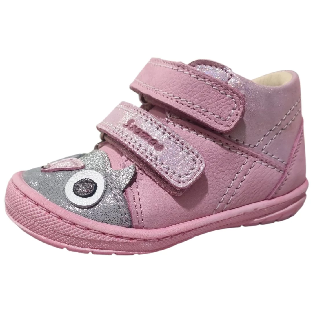 Bűbájos stílus az első lépésektől! Ez a pink Szamos kislány cipő puha valódi bőrből és az orrán egy tündéri ezüst bagollyal készült, hogy minden séta vidám legyen.