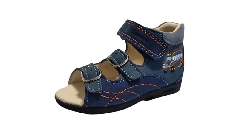 Ez a sötétkék alapszínű kisfiú szandál a Szamos elismert minőségét ötvözi a gyerekek által kedvelt közlekedési eszközök világával. A modell legfontosabb jellemzője a supinált (döntött) sarok, amely segít korrigálni a befelé dőlő bokát és támogatja a lábfej természetes fejlődését. Az oldalán található színes busz hímzés és a dekoratív narancssárga tűzések egyedi karaktert adnak a lábbelinek.