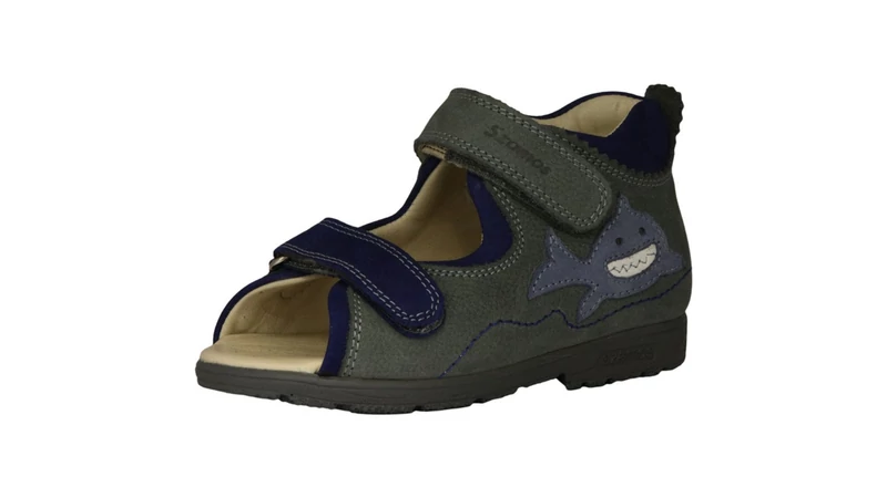 Ez a tartós nubuk bőrből készült kisfiú szandál a Szamos elismert supinált (döntött) talpával készült, amely 5 mm-es belső emelésével hatékonyan segít korrigálni a boka befelé dőlését. A 31-35-ös mérettartományban különösen fontos a láb megfelelő alátámasztása, mivel a gyermek súlyának növekedésével nagyobb terhelés éri az ízületeket. Az antracitszürke felsőrészt tengerkék pántok és egy vidám hímzett cápa motívum teszi egyedivé.