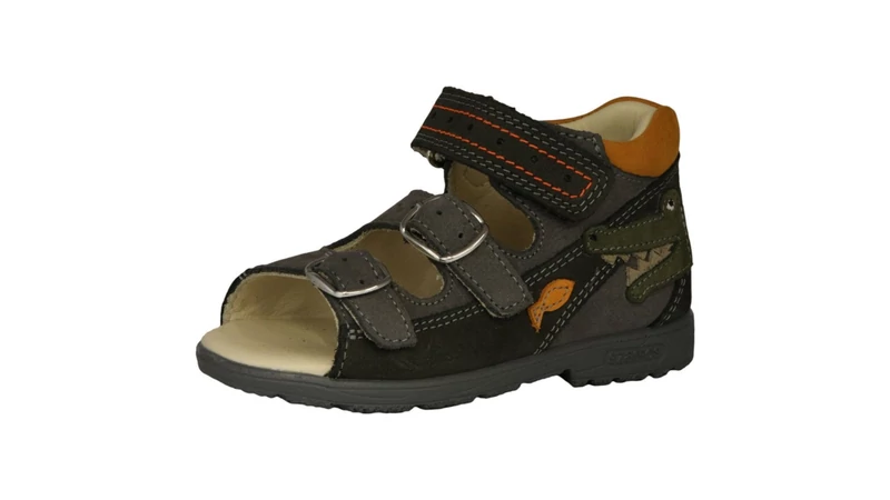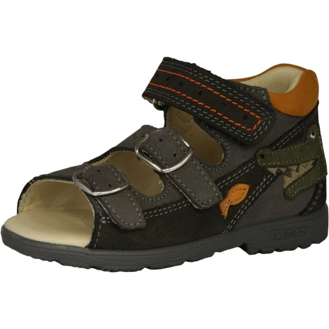 Ez az antracit-szürke alapszínű kisfiú szandál a Szamos elismert minőségét ötvözi a gyerekek által kedvelt állatvilággal. A modell legfontosabb jellemzője a supinált (döntött) sarok, amely segít korrigálni a befelé dőlő bokát és támogatja a lábfej természetes fejlődését. Az oldalán található zöld krokodil hímzés és a dekoratív narancssárga tűzések egyedi karaktert adnak a lábbelinek.
