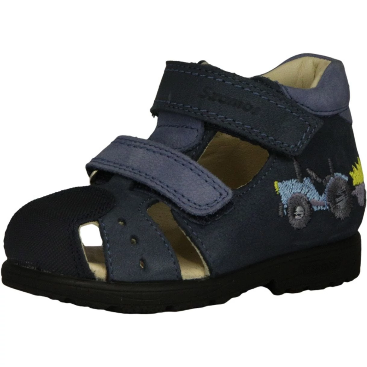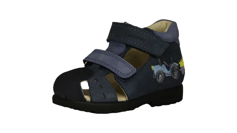 Ez a sötétkék és világoskék színekben pompázó kisfiú szandál a Szamos tradicionális supinált (döntött) talpával készül, amely hatékonyan segít korrigálni a boka befelé dőlését. A modell legfőbb előnye a zárt orr-rész, amely megvédi a lábujjakat a sérülésektől kismotorozás vagy kerti játék közben. Az oldalát díszítő hímzett traktor vidám megjelenést ad, miközben a valódi bőr anyagok biztosítják a láb természetes szellőzését.