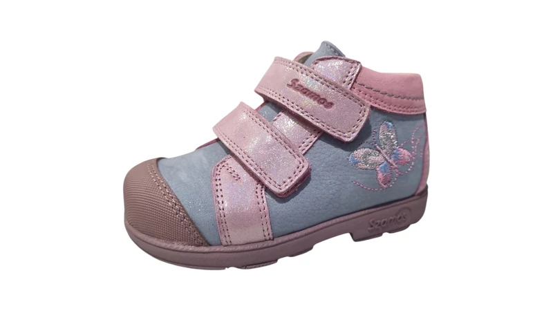 A Szamos supinált modelljei kifejezetten a befelé dőlő boka korrekciójára és megelőzésére készültek. Ez a kék-pink félcipő nemcsak esztétikus, hanem egészségpénztárra elszámolható orvostechnikai eszköz, amely belső döntéssel (supinálással) segíti a lábfej természetes helyzetének megtartását. A minőségi nubukbőr felsőrész és a csillogó pillangó hímzés garantálja, hogy a gyermek szívesen viselje a cipőt egész nap.