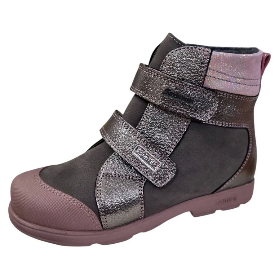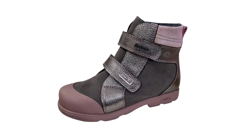 Ez a bakancs a tökéletes példa arra, hogy a "minta nélküli" nem jelent egyet az "unalmassal". Az antracit (sötétszürke) alapszínt gyönyörűen kiemelik a csillogó metálrózsaszín pántok és a bokarész. A gyönyörű külső azonban egy komoly, háromszoros védelmi rendszert rejt: ortopédiai támogatást, vízlepergető réteget és vastag bundás bélést.