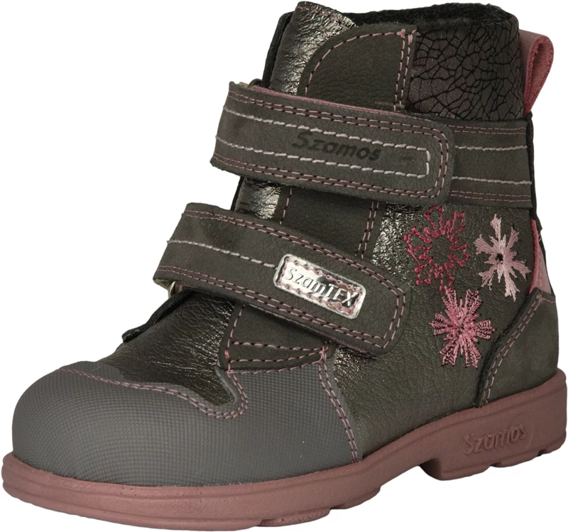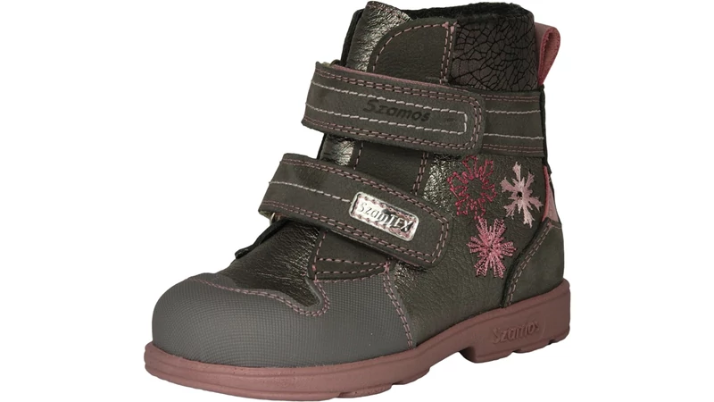 Ez a bakancs nem ismer kompromisszumot. Az antracit és rózsaszín árnyalatok, a finom hópehely hímzés és a repedezett hatású bőr részletek egy igazán divatos téli csizmát alkotnak. A gyönyörű külső azonban egy komoly, háromszoros védelmi rendszert rejt: ortopédiai támogatást, vízlepergető réteget és vastag bundás bélést.