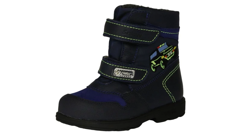 Ez a vagány, sötétkék és lime zöld Szamos fiú téli csizma mindent tud, amire a hideg hónapokban szükség lehet. A befelé dőlő bokát korrigáló supinált kialakítás mellett SzamTEX membránnal is ellátták a vízlepergetésért, a puha, meleg bélés pedig a fagyos napokon is komfortos viseletet biztosít. Az oldalán található hímzett terepjáró minta garantáltan a kisfiúk kedvence lesz.