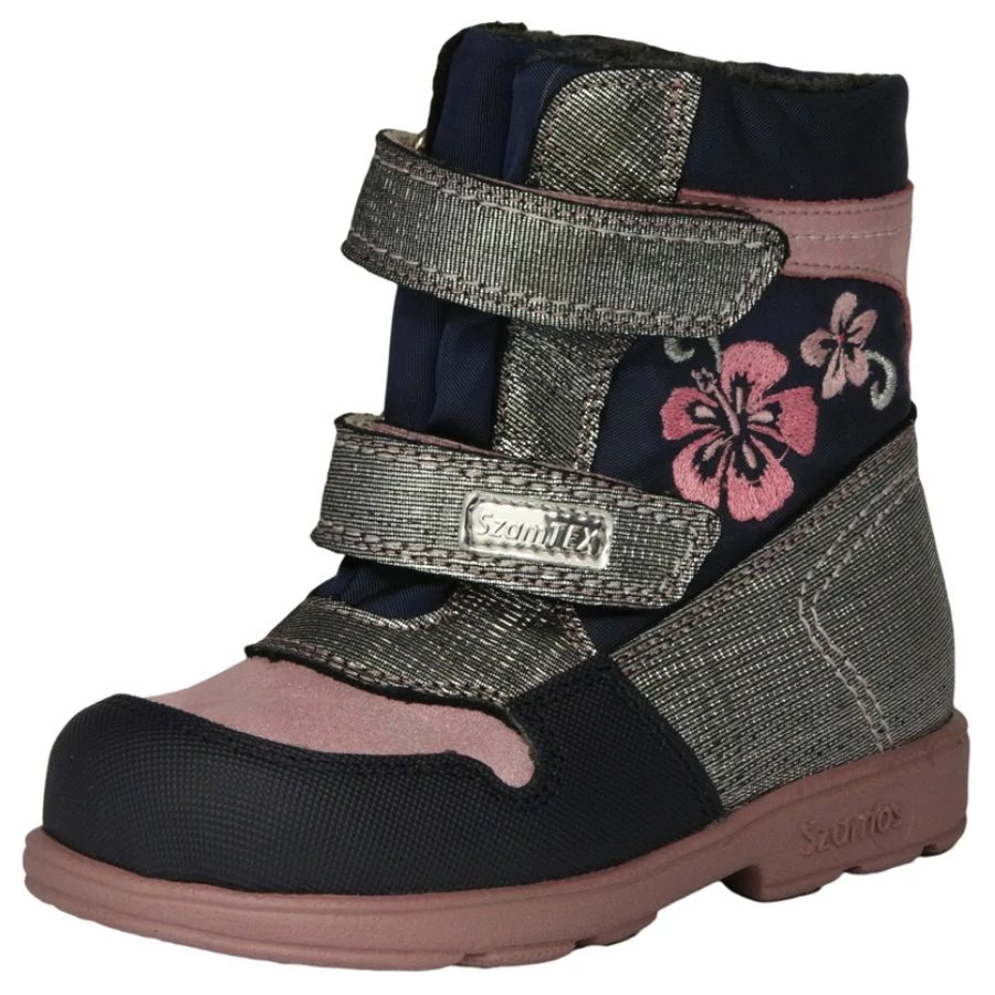 Ez a gyönyörű, sötétkék és rózsaszín Szamos lány téli csizma mindent tud, amire a hideg hónapokban szükség lehet. A befelé dőlő bokát korrigáló supinált kialakítás mellett SzamTEX membránnal is ellátták a vízlepergetésért, a puha, meleg bélés pedig a fagyos napokon is komfortos viseletet biztosít. Az elegáns virághímzés és a csillogó pántok garantáltan a kislányok kedvencévé teszik.