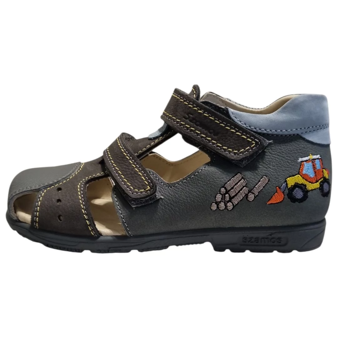 Szamos Kisfiú Supinált Zártorrú Szandál - Munkagépes - Szürke/Kék (25-35)