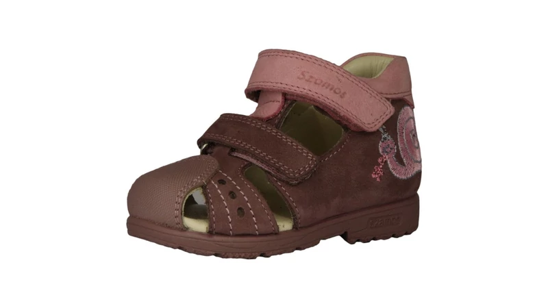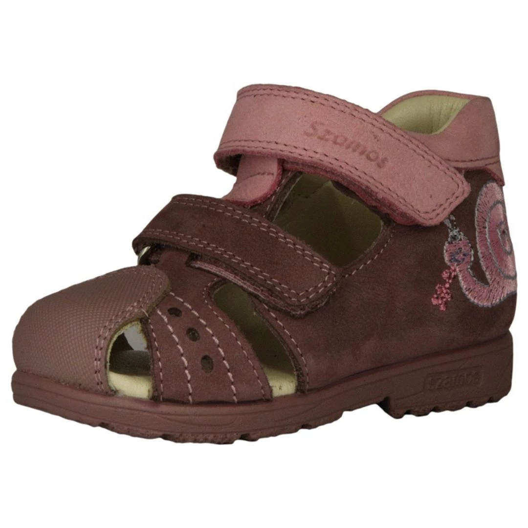 Ez a gyönyörű mályva és pink árnyalatokban pompázó kislány szandál a Szamos elismert minőségét képviseli. A modell legfontosabb jellemzője a supinált (döntött) sarkú talp, amely segít korrigálni a befelé dőlő bokát és támogatja a lábfej egészséges fejlődését. Az oldalán található csillogó, hímzett csigabogár egyedi és kedves karaktert ad a szandálnak. A zárt orr-rész és a megerősített védelem biztonságot nyújt a lábujjaknak kismotorozás vagy aktív játék közben is.