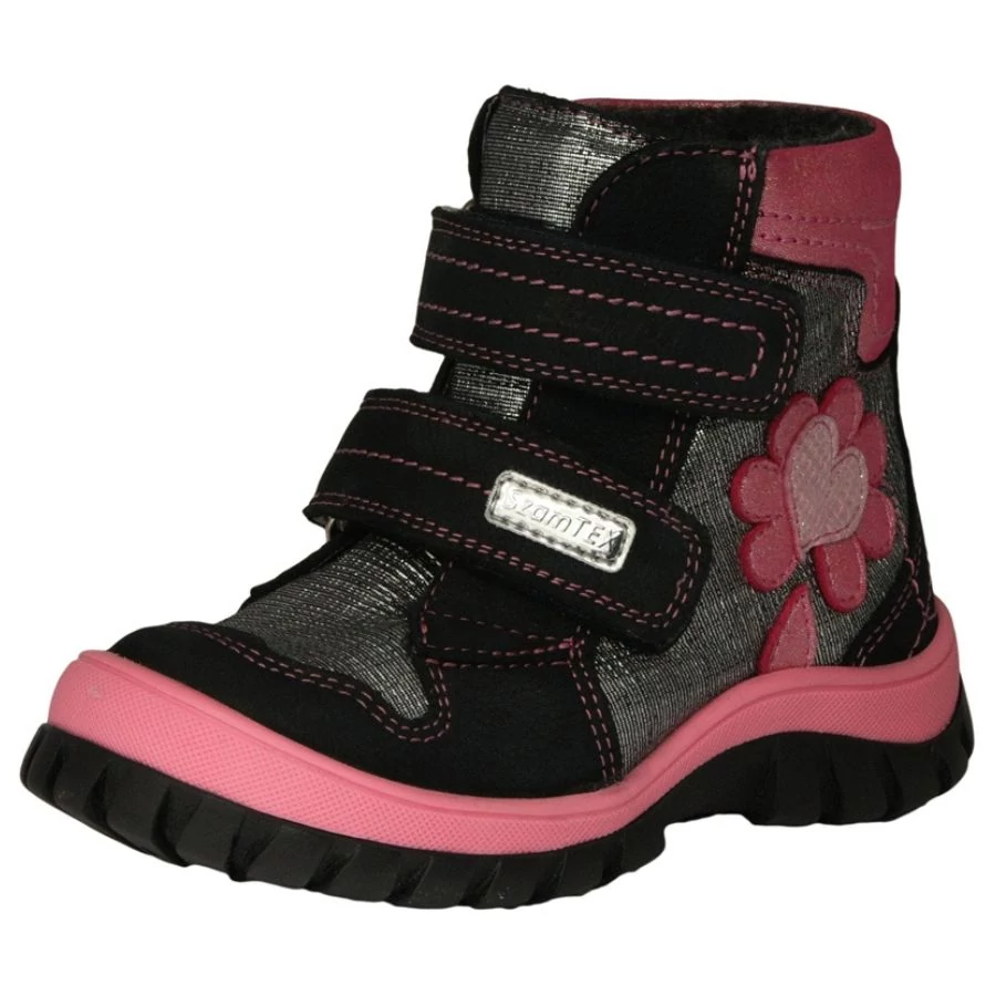 Szamos Kölyök SzamTEX Téli Lány Bakancs Virággal - Fekete/Pink 25-29 (25)
