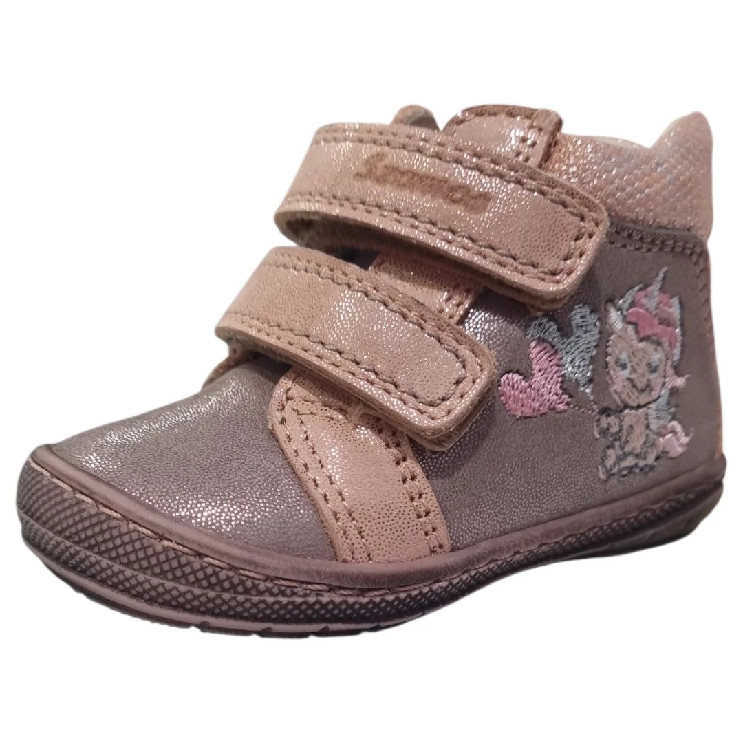 A Szamos szakértelme az egészen pici lábak számára is elérhető ebben a bájos, unikornisos modellben. A cipő felsőrésze elegáns homokszínű bőrből készült, amelyet csillogó rózsaszín pántok és részletek tesznek igazán kislányossá. Az oldalán található részletgazdag hímzés egy lufit tartó unikornist ábrázol, ami azonnal a kicsik kedvencévé válik.